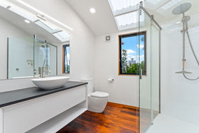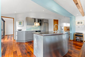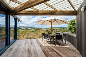 Designed by Leuschke Group Architects, led by Lindy Leuschke - whose work has helped shape Omaha over more than three decades - the home is a thoughtful, site-led interpretation of the New Zealand bach. Nautical in influence yet purposeful in execution, the design prioritises sun, outlook and liveability. Recycled native timbers, including matai flooring with kauri and rimu detailing, give the interiors warmth and authenticity that sit naturally within the coastal setting.
