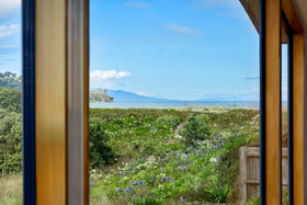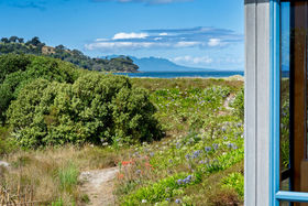 39 Success Court enjoys a prime beachfront reserve setting in Omaha North, with a broad, open outlook across protected dune reserve. Natural beach foliage softens the foreground, giving the home a relaxed coastal feel.