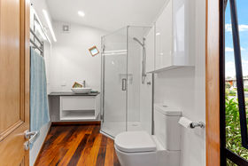North-facing and just 60 steps to the sand and surf break, the home is designed for easy indoor-outdoor living. Three Kwila decks extend the living areas, offering options throughout the day for sun, shelter and entertaining, with the reserve as a constant coastal backdrop. The scale is deceptive as interiors are generous, flexible and well suited to extended family living, comfortably sleeping up to eight.